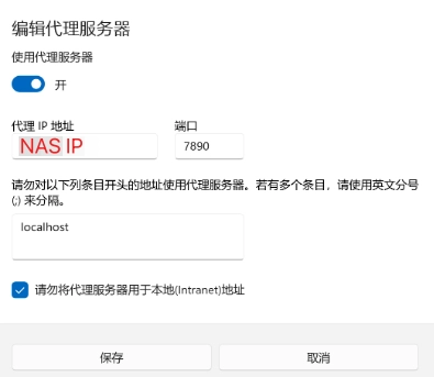 也有的应用支持在自己的 UI 中直接设置代理,比如下面是 Cloud Saver 的代理设置页面: