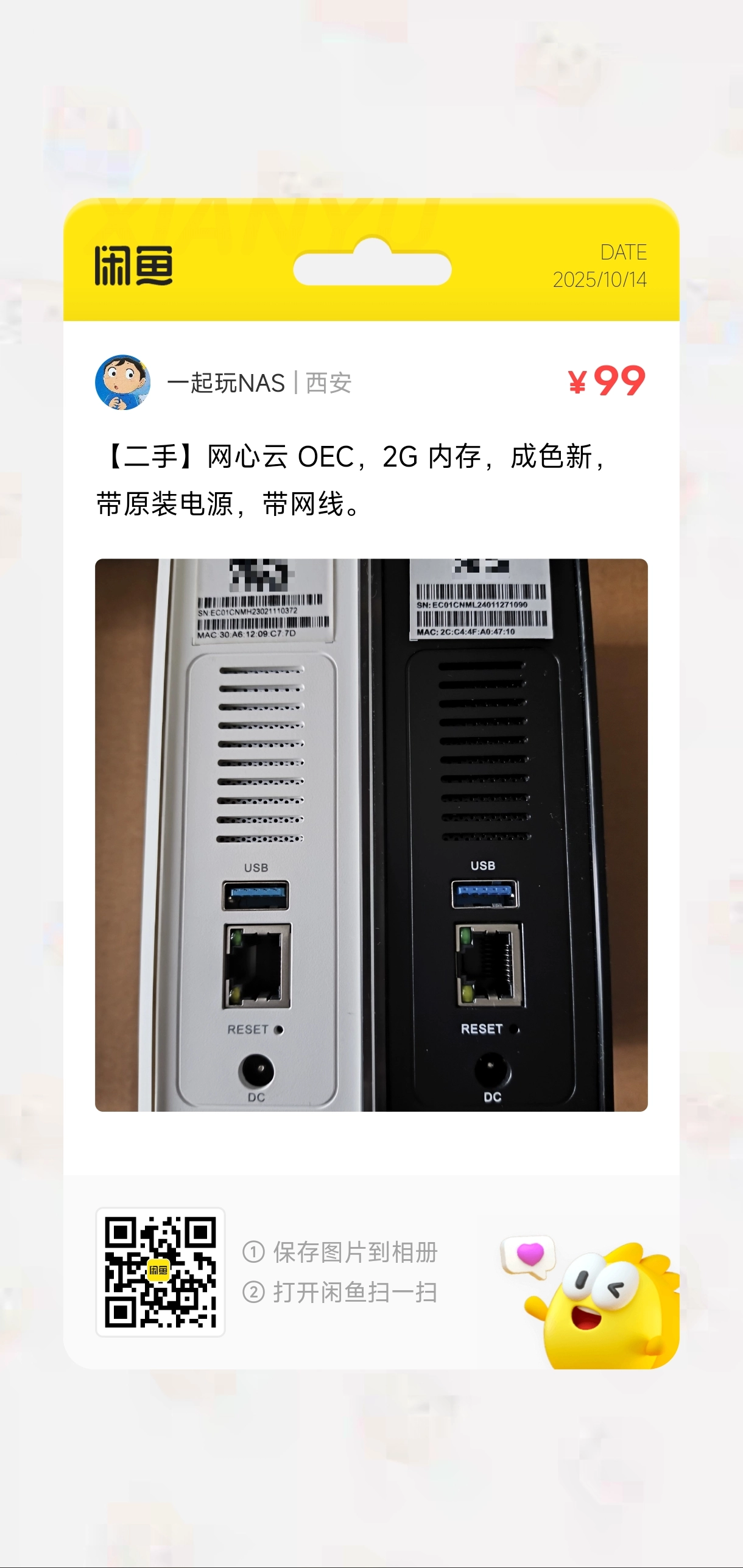 我这里正好有几个刷好群晖(DS124)的网心云 OEC,如果有需要的,可以使用闲鱼 App 扫码购买。